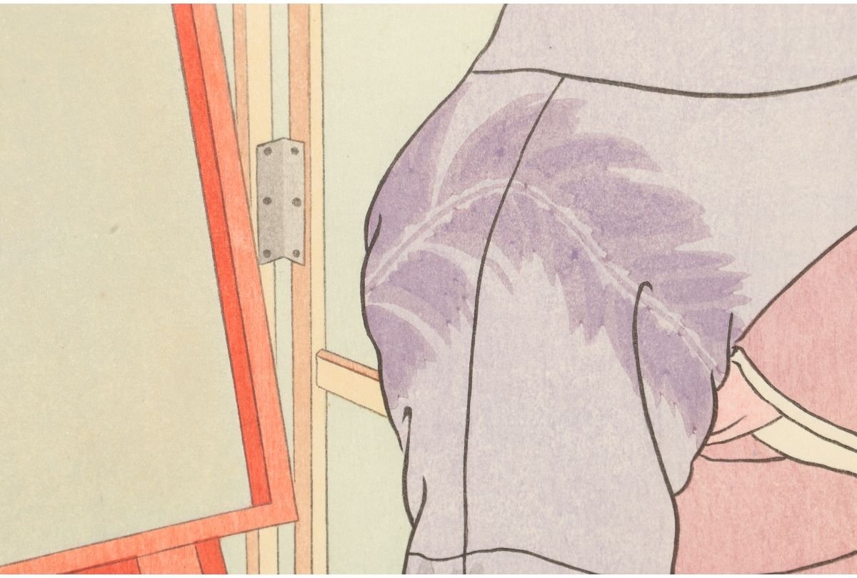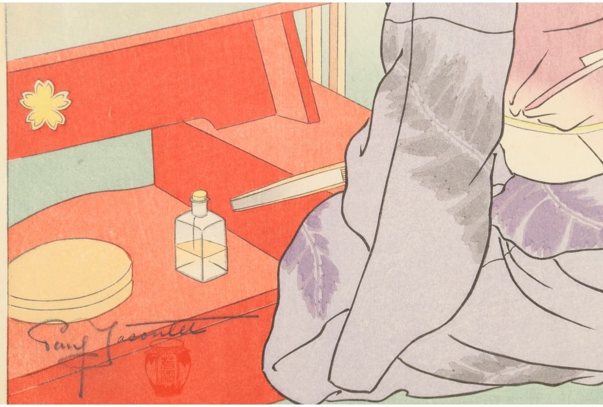 Title "Red painted mirror stand"