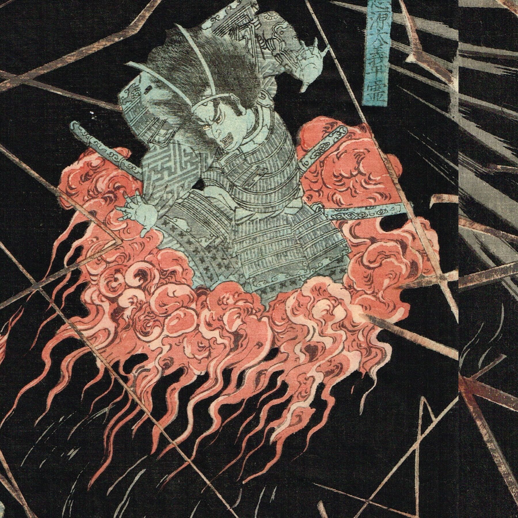 Utagawa Kuniyoshi "The ghost of wicked Genta Yoshihira attacking Namba Jiro"